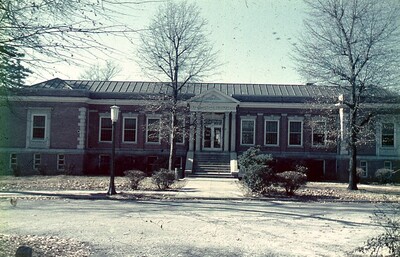 This photograph is of Whitefoord Smith Library, built in 1910 and expanded in the late 1940s. It was later renovated into a classroom building and renamed the Charles E. Daniel Building.