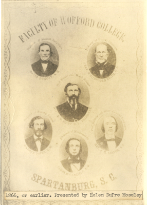 A composite of the Wofford College faculty around 1866, including David Duncan, Warren DuPre, Albert M. Shipp, Whitefoord Smith, James H. Carlisle, and A. H. Lester.
