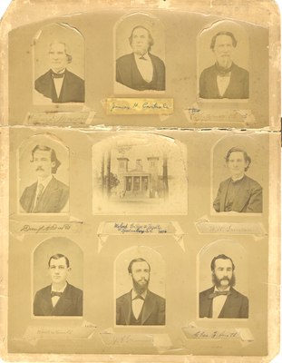 This composite photograph of the Wofford faculty in 1879, including David Duncan, James Carlisle, Whitefoord Smith, Daniel DuPre, William Wallace Duncan, William M. Baskervill, J. A. Gamewell, and Charles Forster Smith.