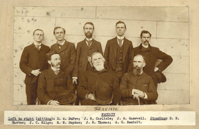 The Wofford College faculty on Feb. 25, 1894, including Daniel DuPre, James Carlisle, J. A. Gamewell, D. B. Baxter, J. C. Kilgo, H. N. Snyder, J. B. Thomas, and A. G. Rembert.