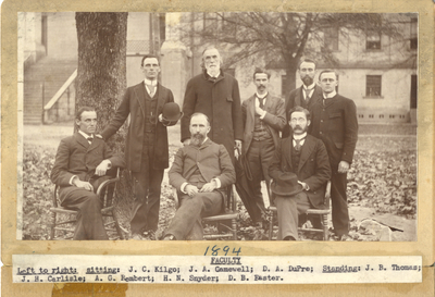 The Wofford College faculty of 1894, outside, including J. C. Kilgo, J. A. Gamewell, D. A. DuPre, and J. B. Thomas, J. H. Carlisle, A. G. Rembert, H. N. Snyder, and D. B. Easter.