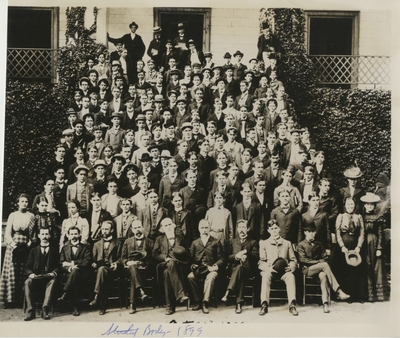 Photo of the Wofford College student body taken in 1899 in front of Main Building. The faculty are in the front row.