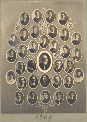 This composite photograph is of the Wofford College class of 1904. It includes the members of the faculty. The last two women to graduate from Wofford in this era are included. The photo is identified in the folder.