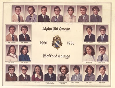 This composite photograph is of the Alpha Phi Omega Service Fraternity, from the 1980-81 school year.