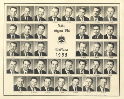 This composite photograph is of the Delta Sigma Phi Fraternity from 1959. That fraternity no longer exists on campus.