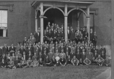 The Wofford Fitting School was a preparatory school operated by Wofford College until 1924. This photo was taken in front of one of the Fitting School buildings on the Wofford campus.