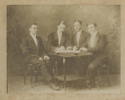 Photograph of Wofford's Intercollegiate debaters, 1913-14. King, Kearse, Manning, Moyer. Photo also appears in the 1914 Bohemian.