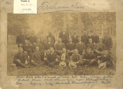 This photograph is of the Wofford College class of 1891, taken during their freshman year, 1887-88. Gift of Mr. C. P. Hammond of the class.